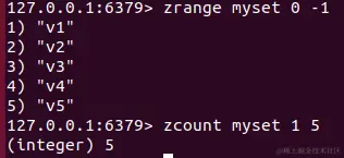 zcard key:获取集合中的元素个数 zcount key start end:获取区间里面元素个数