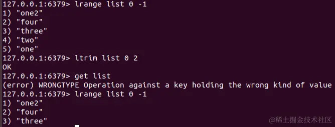 ltrim key start end:通过下标截取指定长度的元素,截取后list已经被改变,只剩下截取的元素