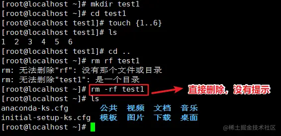 - -rm -rf test1(实操中极度危险命令)