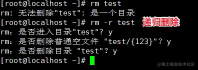 常用选项 -f: | -f:不提醒,直接强制删除 | | --- | ------------- | | -i: | -i:提醒用户确认 | | -r: | -r:递归删除整个目录树