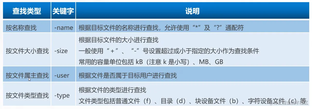 - 按文件类型查找:“-type"