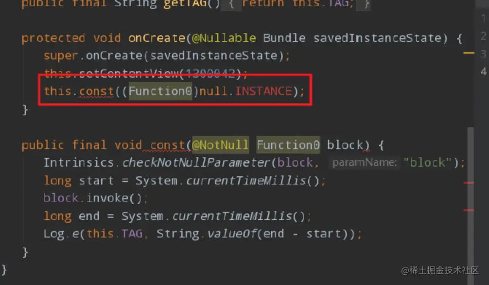 然后我们查看下编译后的代码(输⼊Show Kotlin Bytecode)