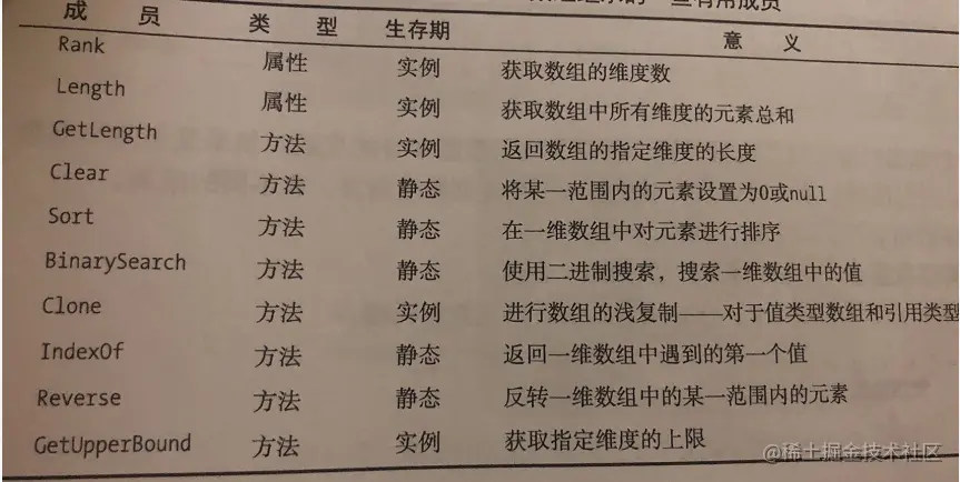 在C#中的数组是继承自System.Array类。可从基类继承很多有用的属性和方法,比如下面图片所示: