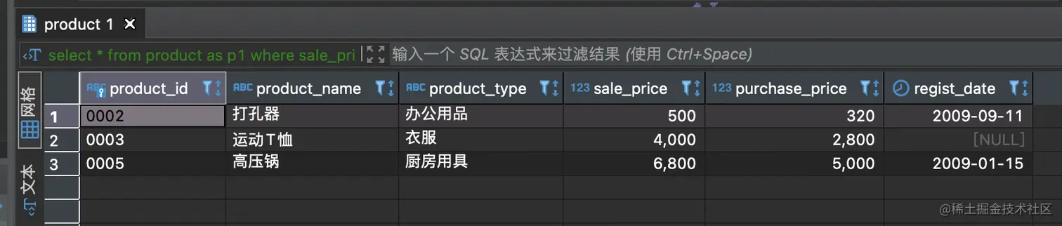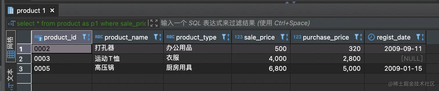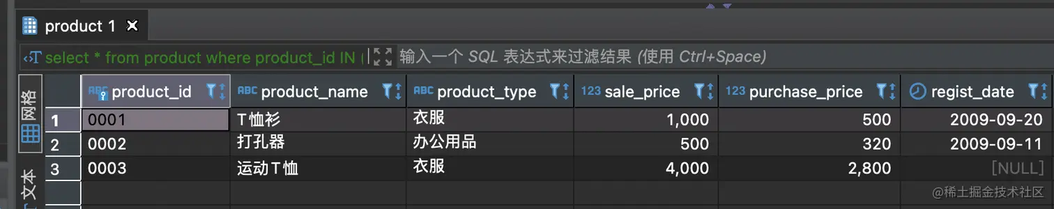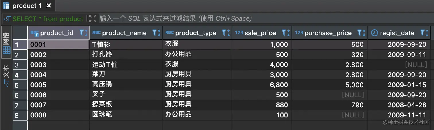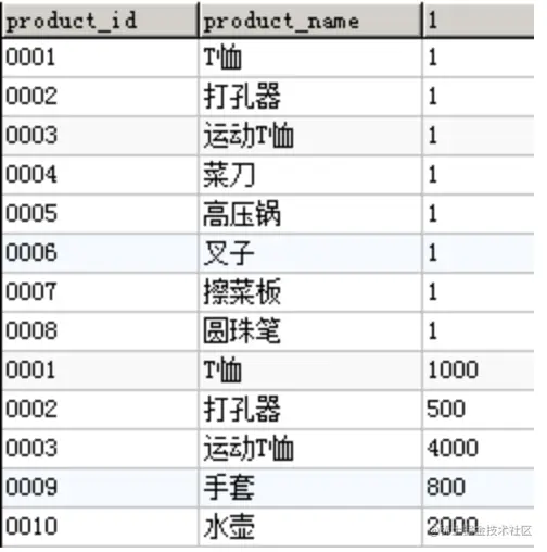 -- 隐式类型转换:1既是第三列,也是product表该列的默认值。结果看下面的图。