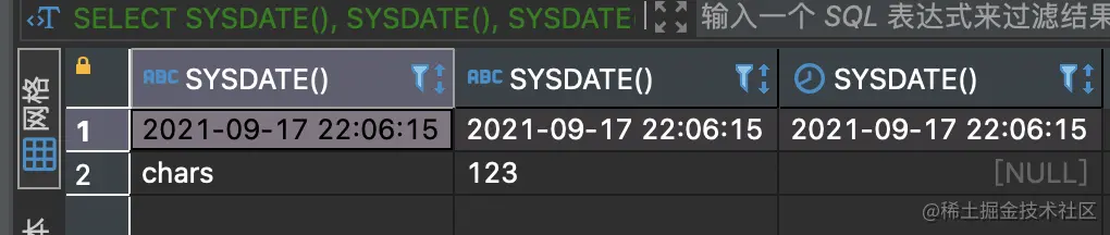SYSDATE()函数可以返回当前日期时间, 是一个日期时间类型的数据