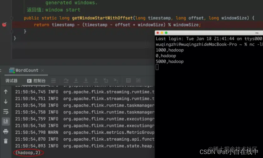 我们可以看出来窗口开始时间, 是取模过后的时间,我们来简单的分析一番。