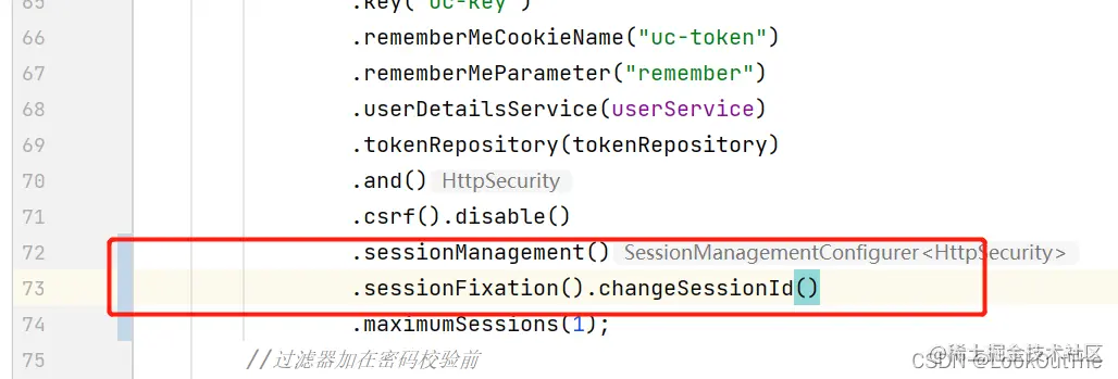 防御会话固定攻击的方法非常简单,只需在用户登录之后重新生成新的session即可。在继承 WebSecurityConfigurerAdapter时,Spring Security已经启用了该配置。