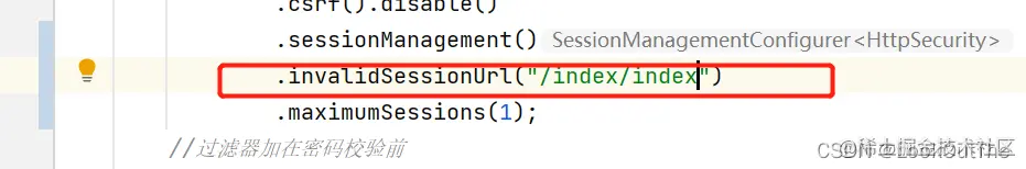 除防御会话固定攻击外,还可以通过Spring Security配置一些会话过期策略。例如,会话过期时跳 转到某个URL。