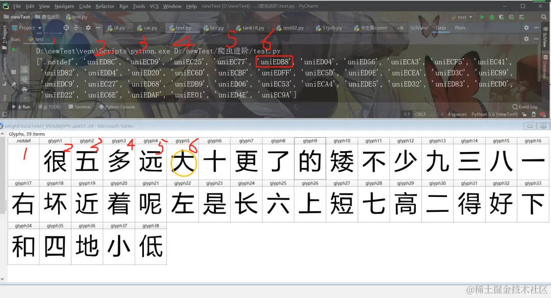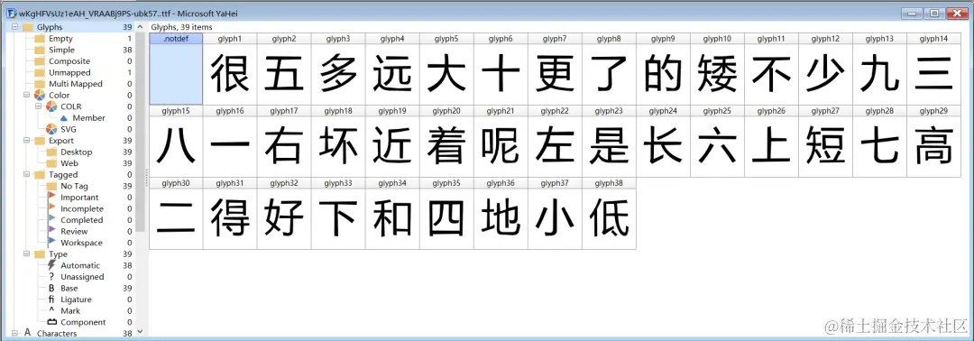 粗略一看其实发现不了什么,所以我们需要使用fontTools第三方库查看字体文件: