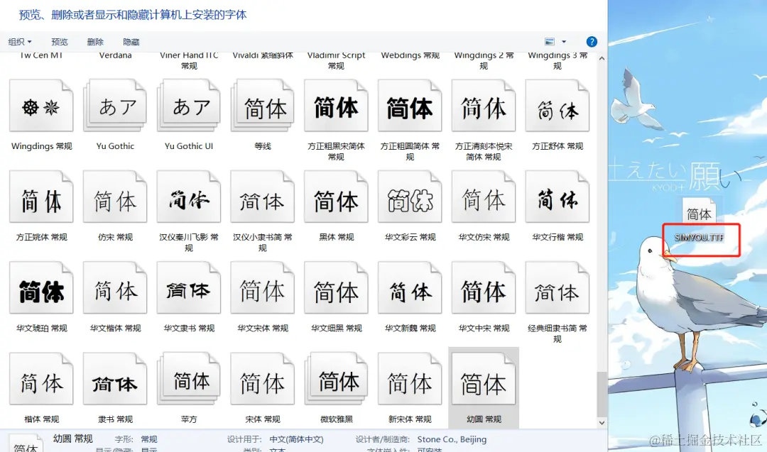 我们知道系统字体一般都是xxxx.ttf的文件形式,如下图所示: