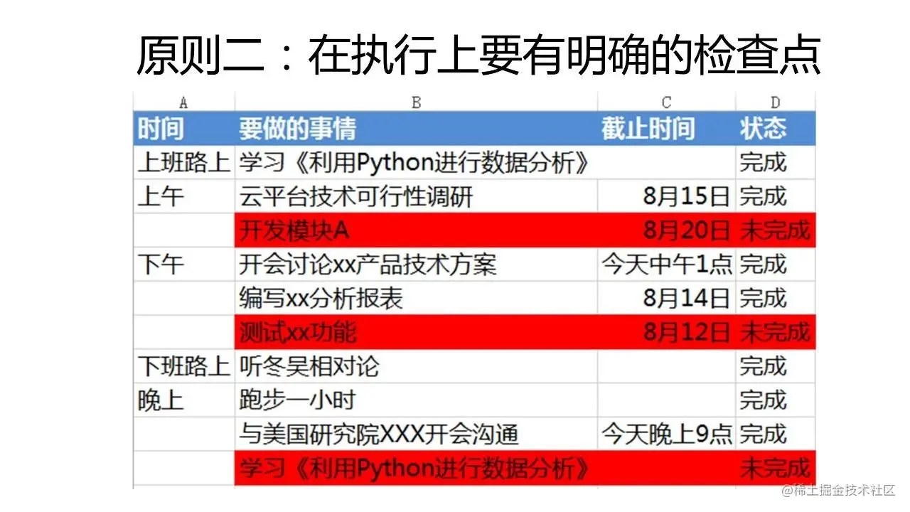 管理工作任务清单要遵循的第二个原则,在执行上要有明确的检查点。什么是检查点呢?