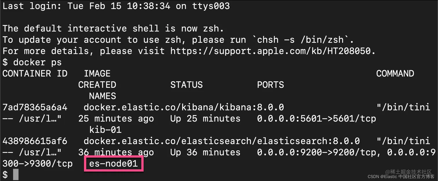 我们可以通过如下的命令来获取 Elasticsearch 容器的名称: