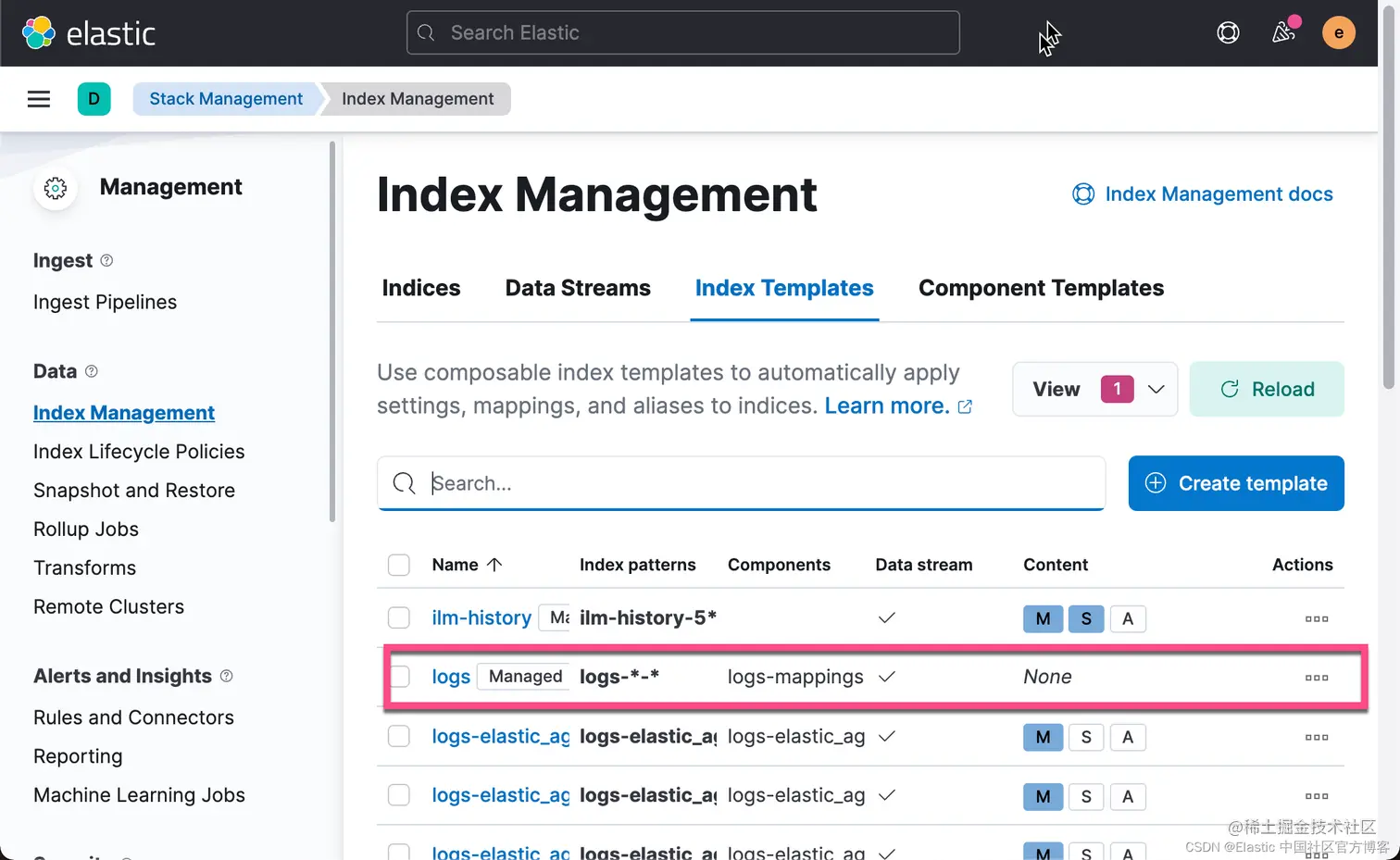 数据流需要与其名称匹配的索引模板。 Elasticsearch 使用这个模板来配置流的后备索引。 发送到数据流的文档必须具有 @timestamp 字段。
