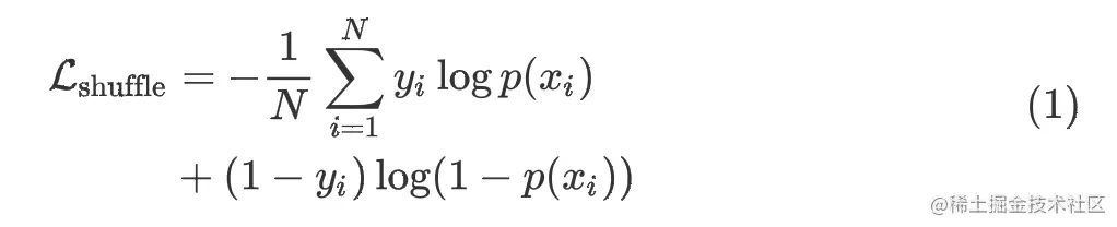 对于Shuffle任务来说,其损失函数为简单的Cross-Entropy Loss: