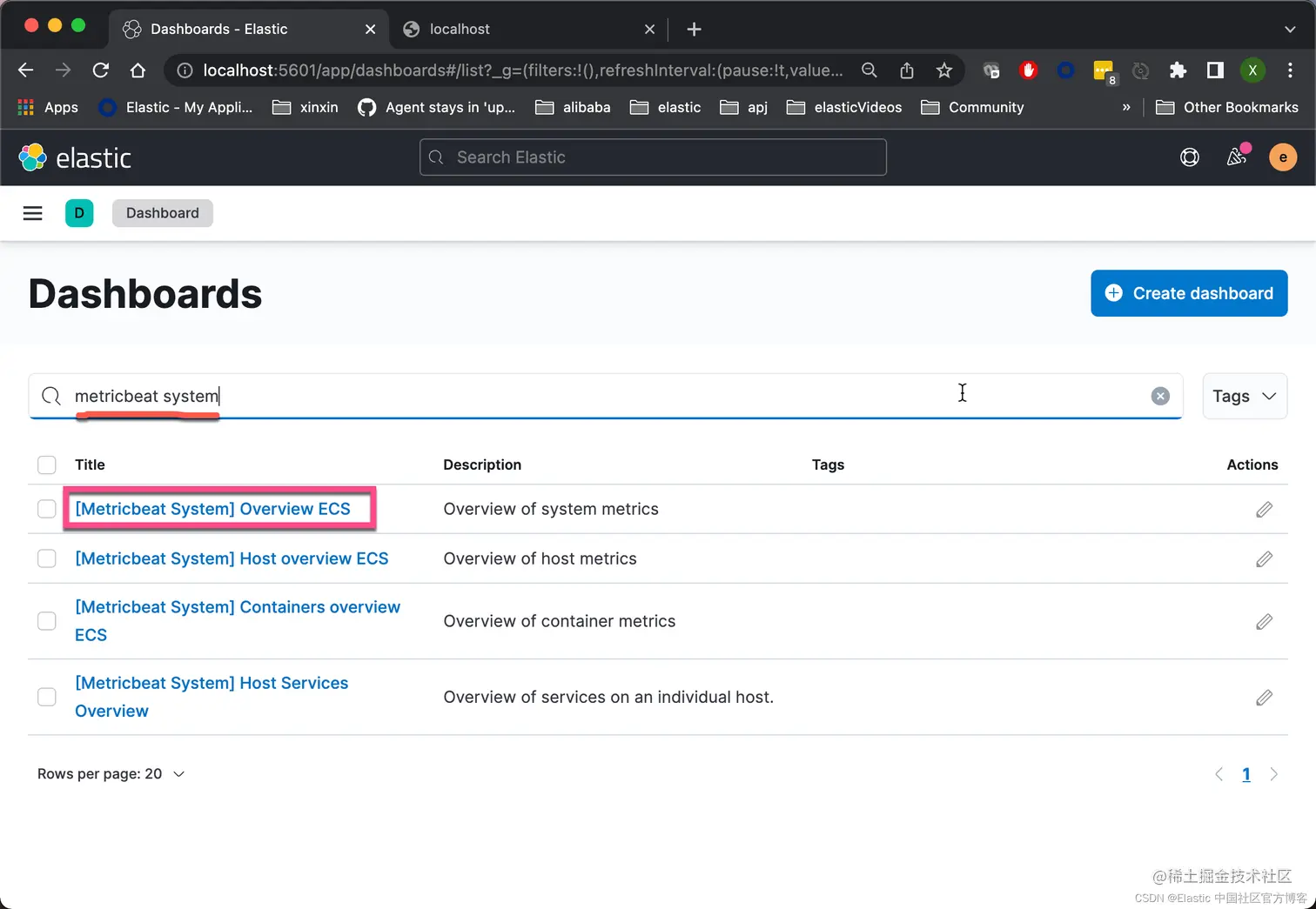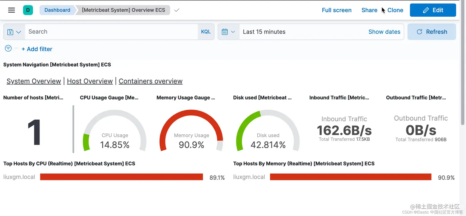 我们回到 Kibana 的 Dashboard 中进行查看: