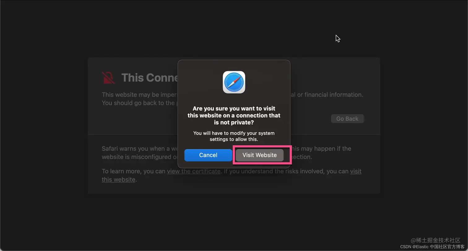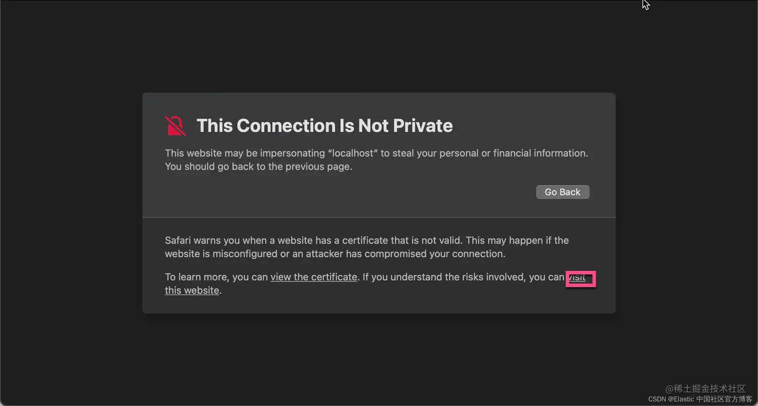 请注意,Kibana 不会通过浏览器启用 Web HTTP TLS。这是我们建议考虑的附加步骤,以进一步提高系统的安全性。