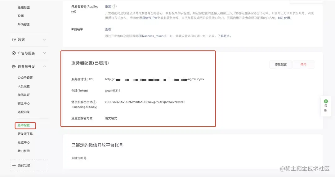 2.5、启动项目,然后去公众号后台配置服务器信息