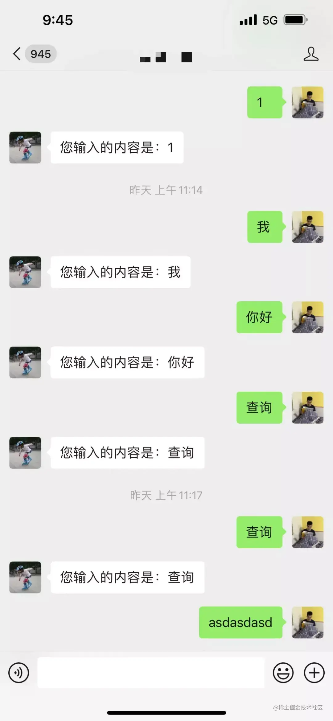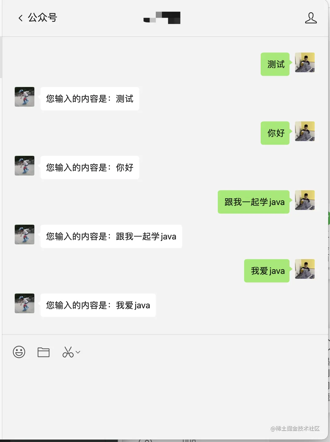 4.4、启动项目给公众号回复消息进行测试。结果: