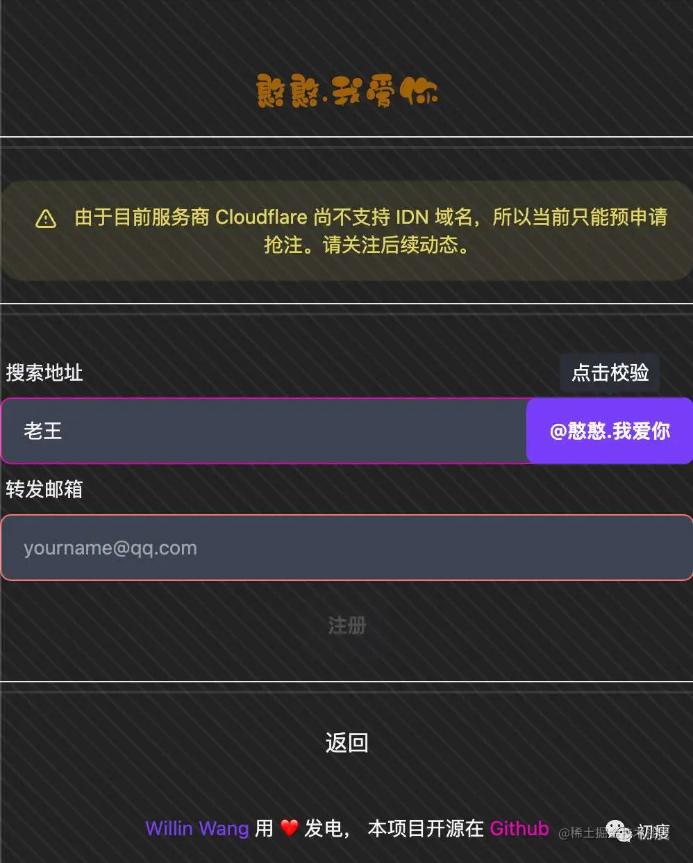 目前使用了 Cloudflare 的邮件转发服务,暂不支持 IDN 域名,但您可以提前抢注,第一时间拥有网站。