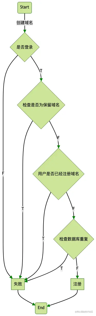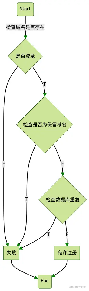 在数据库中只需查询一次即可知晓用户是否已经注册域名或存在相同域名,这里为了提高查询性能对接口进行了拆分。