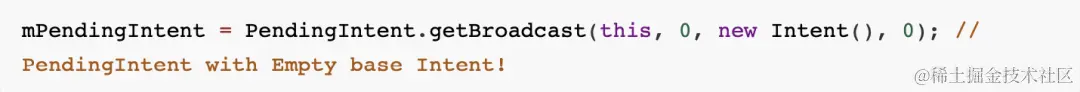 第二个案例来源于CanSecWest2016的分享,即时通信软件LINE App启动服务时泄漏了一个PendingIntent对象,且base Intent为空Intent: