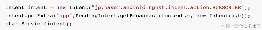 jp.naver.android.npush.intent.action.SUBSCRIBE 的服务,然后获取上面的PendingIntent,最后以LINE App的身份发送广播,造成伪造LINE App推送消息的危害。\