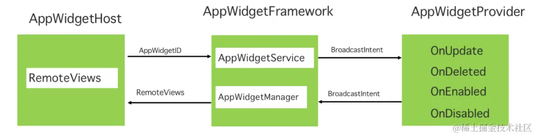 访问(bind)AppWidgetProvider,并接受有关的AppWidget的变化信息,如图所示。