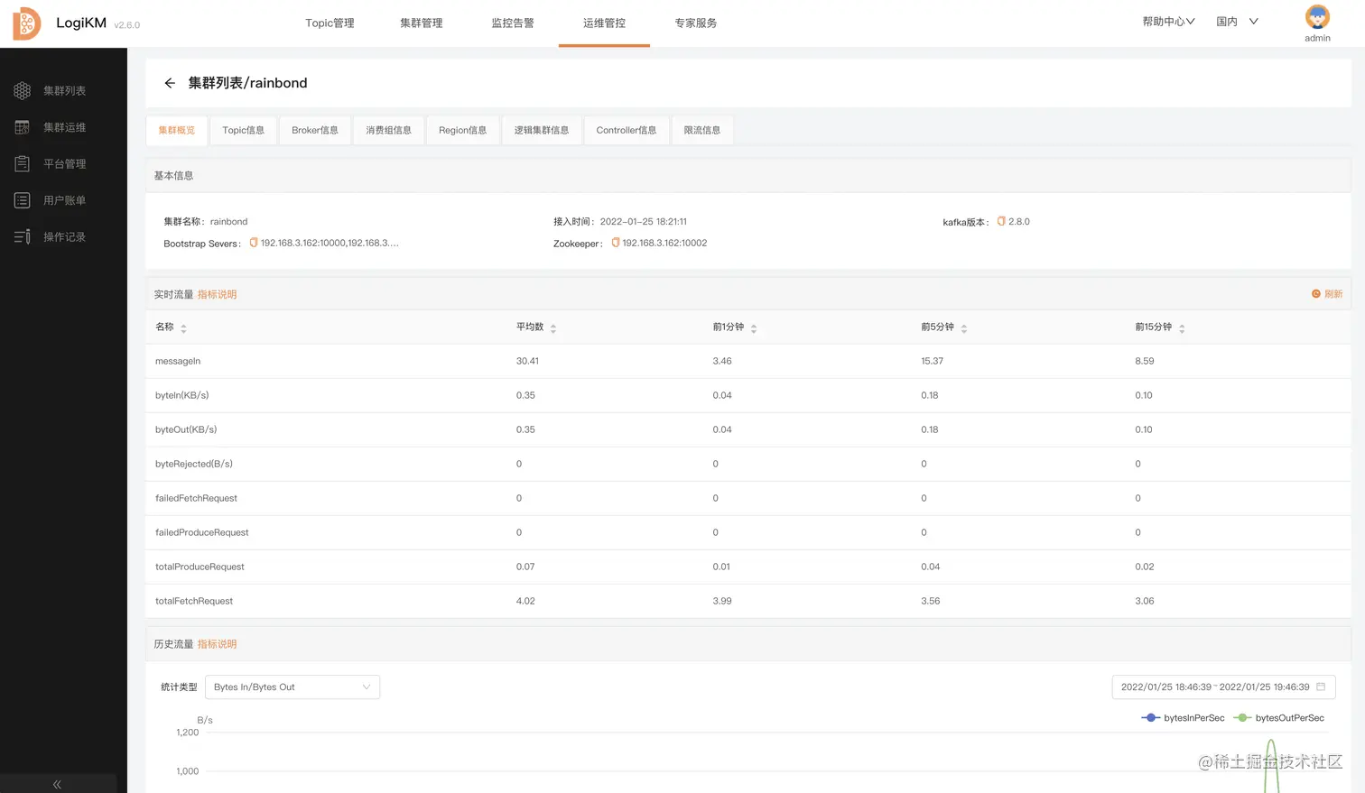 对接完成后,我们就可通过 Logikm 管理 kafka 集群啦。
