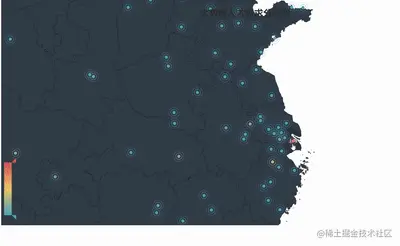 geo.add("",attr2, value2, type="effectScatter", is_random=True, visual_range=[0, 1000], maptype='china',symbol_size=8, effect_scale=5, is_visualmap=True)