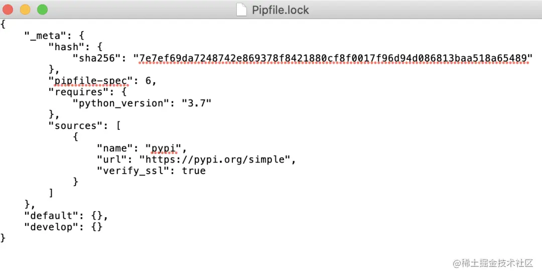 - Pipfile.lock 记录了固定版本的详细依赖包列表。