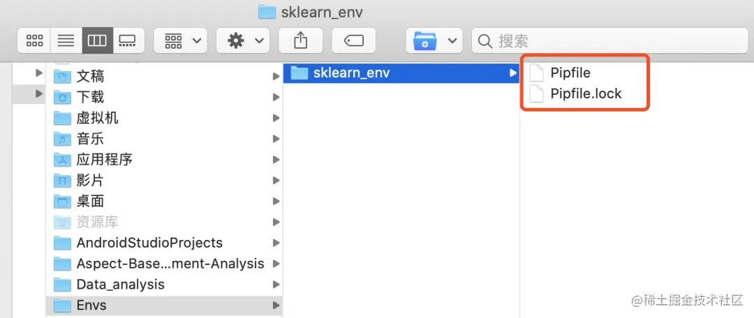 运行结束后在sklearn_env文件夹中会生成两个文件(下面截图中,我没有建.venv文件夹,所以虚拟环境文件会生成存放到默认路径中)