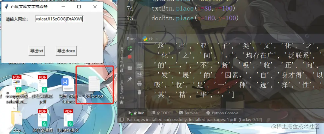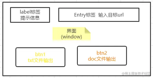 我们的目的是做一个简单GUI界面,通过输入url(百度文库网站对应文章的链接),然后输出txt文件(因为文字是目标数据,具体保存文件格式可以因情替换),点击输出按钮触发事件,selenium操作浏览器抓取数据的动作。