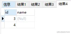 SELECT * FROM user WHERE name IS NULL; 结果2: