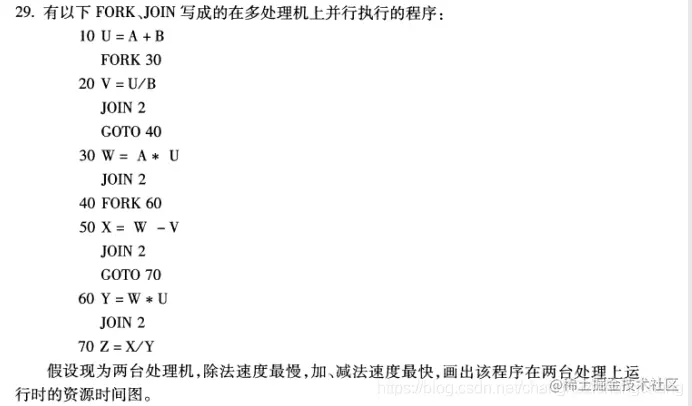 3、然后遇到FORK30语句时就分出一个cpu2去执行标号为30的进程,而cpu1接着执行标号为20的进程。