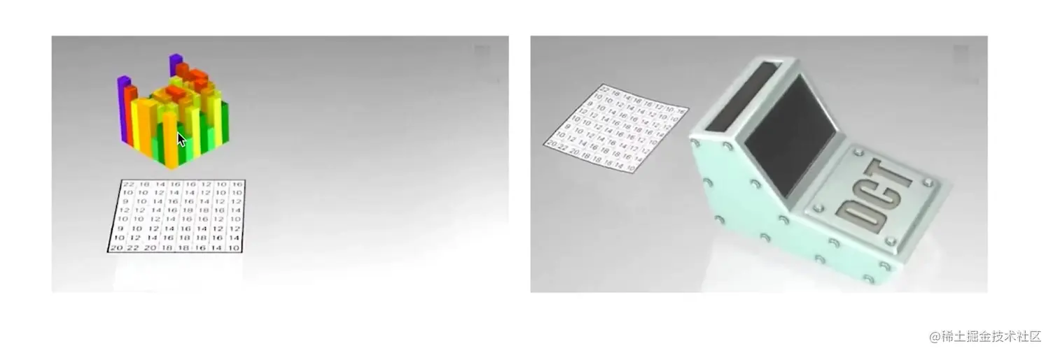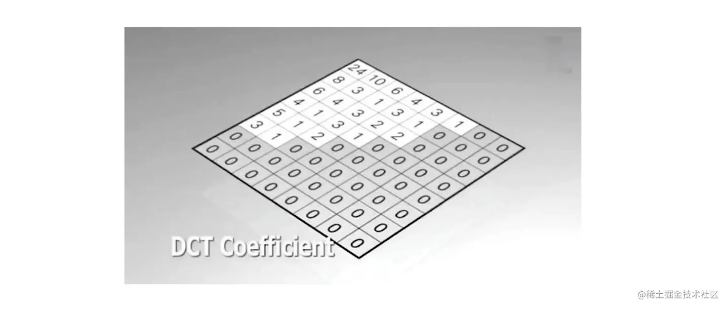 经过有损压缩之后, 数据是分散在二维表的各个点上的, 经过DCT变换之后, 分散的数据被集中到一块, 以此在进行无算压缩就会很方便, 由此可见, DCT变换就是将数据从分散到集中的一个过程.