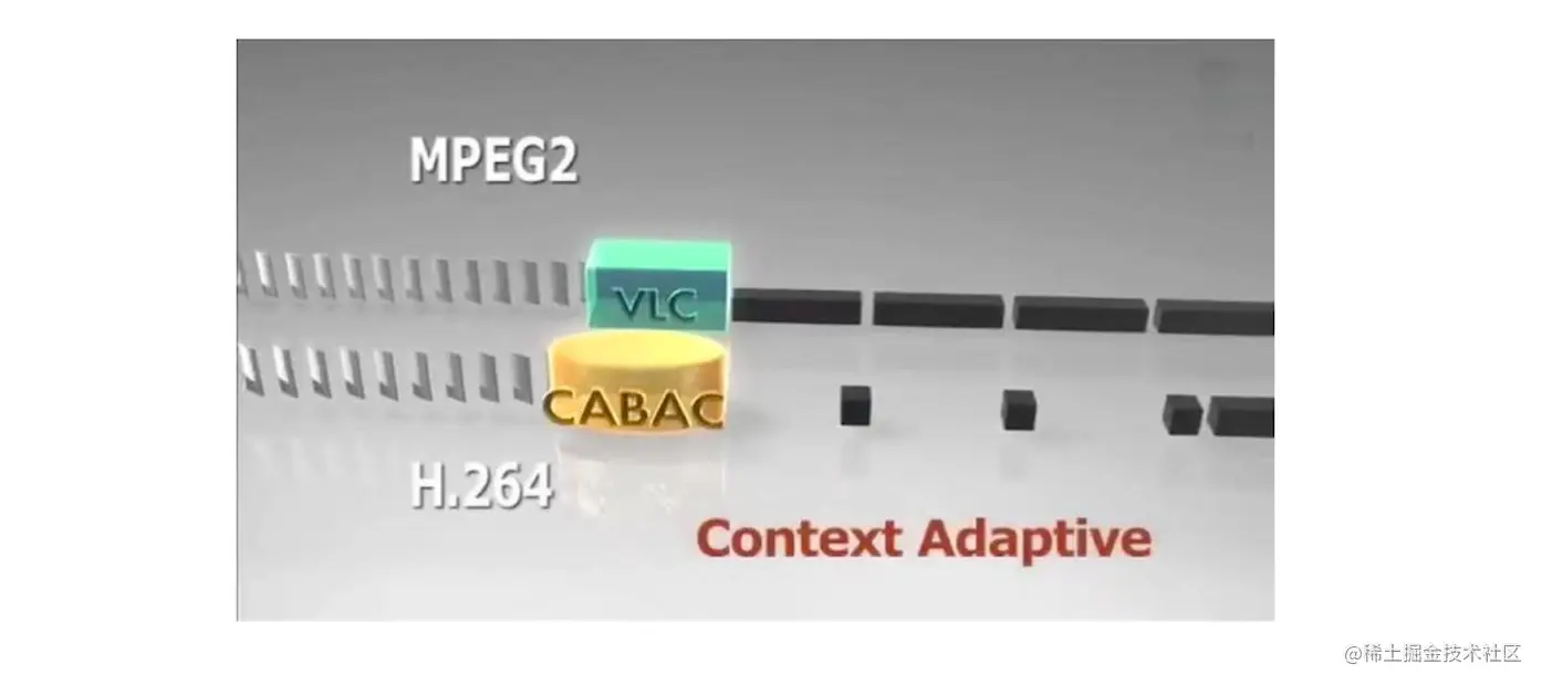 - CABAC(压缩率更高) : (Context-based Adaptive Binary Arithmetic Coding),基于上下文的自适应二进制算术编码。CABAC是H.264/AVC标准中两种熵编码中的一种,它的编码核心算法就是算术编码(Arithmetic Coding)
