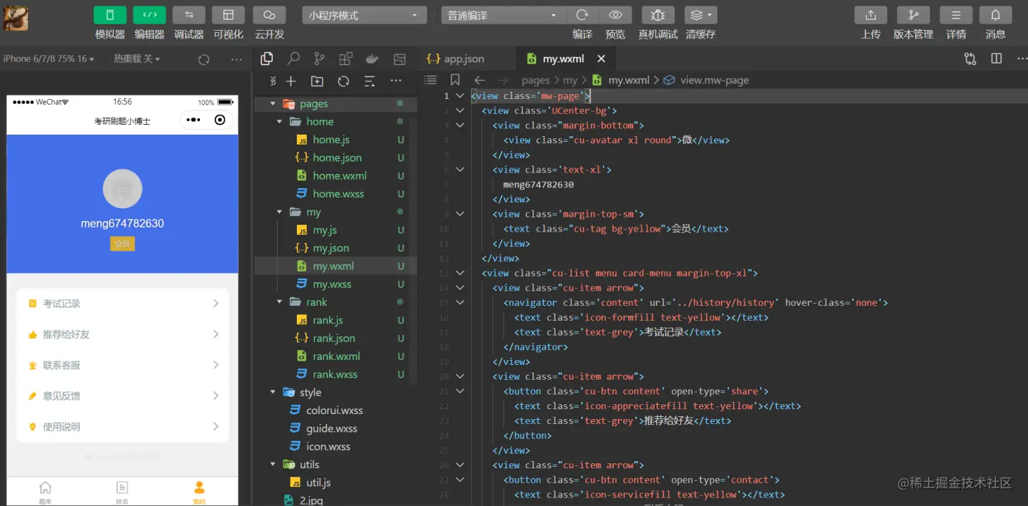 这期的考研刷题小程序云开发实战,主要演示了整个页面的开发流程与配置,并对关键的地方进行了讲解,细枝末节可以详细看看代码即可,其实并不难。难就难在创意、设计与实现等一系列。价值区别在于,能看与好看、能用与好用。