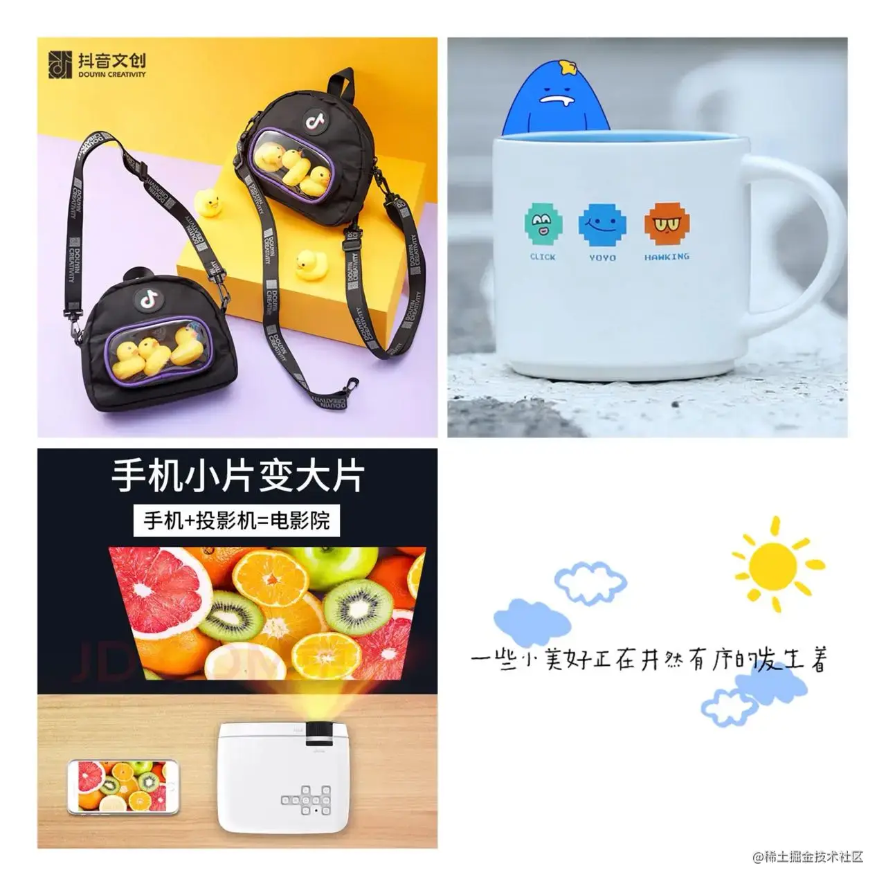当然,我们不只为大家准备了精彩的干货内容,在保准内容有料的同时,也为大家准备了有趣、有用的奖品哦! “舒服窝在沙发里”的投影仪、“憨态可掬萌萌哒”的小黄鸭背包、“多喝热水bug少”的掘金马克杯,等你领回家!!!