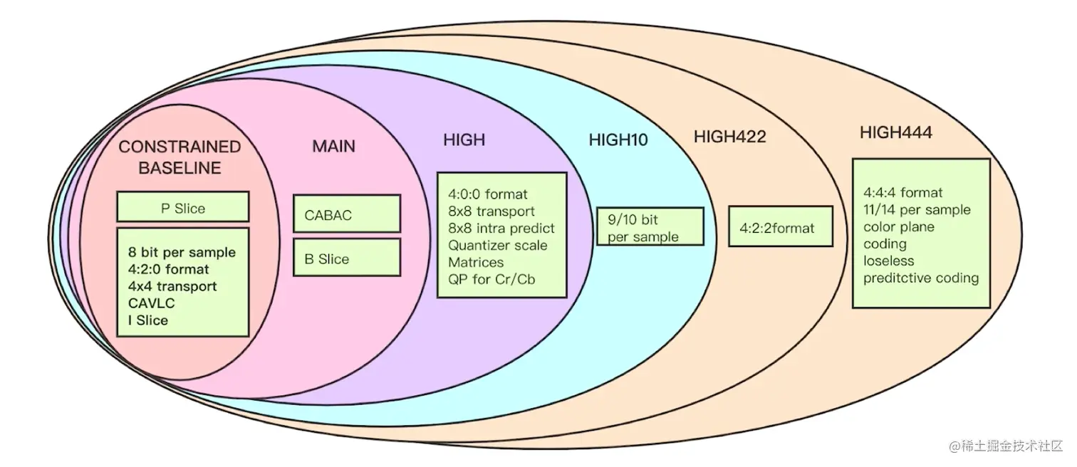 对视频压缩特性的描述, profile越高, 就说明采用了越高级的压缩特性, 压缩也就越高.