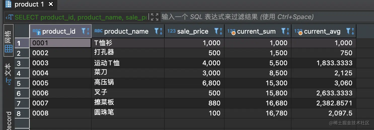 可以看到current_sum是逐行递增,current_avg对应当前行平均。