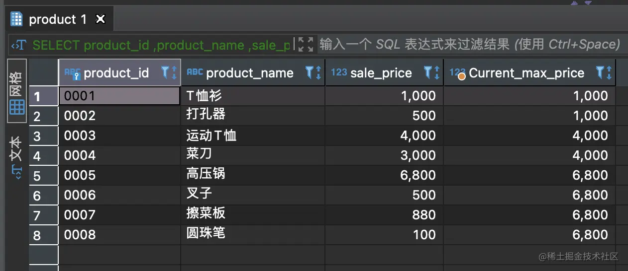 ,MAX(sale_price) OVER (ORDER BY product_id) AS Current_max_price