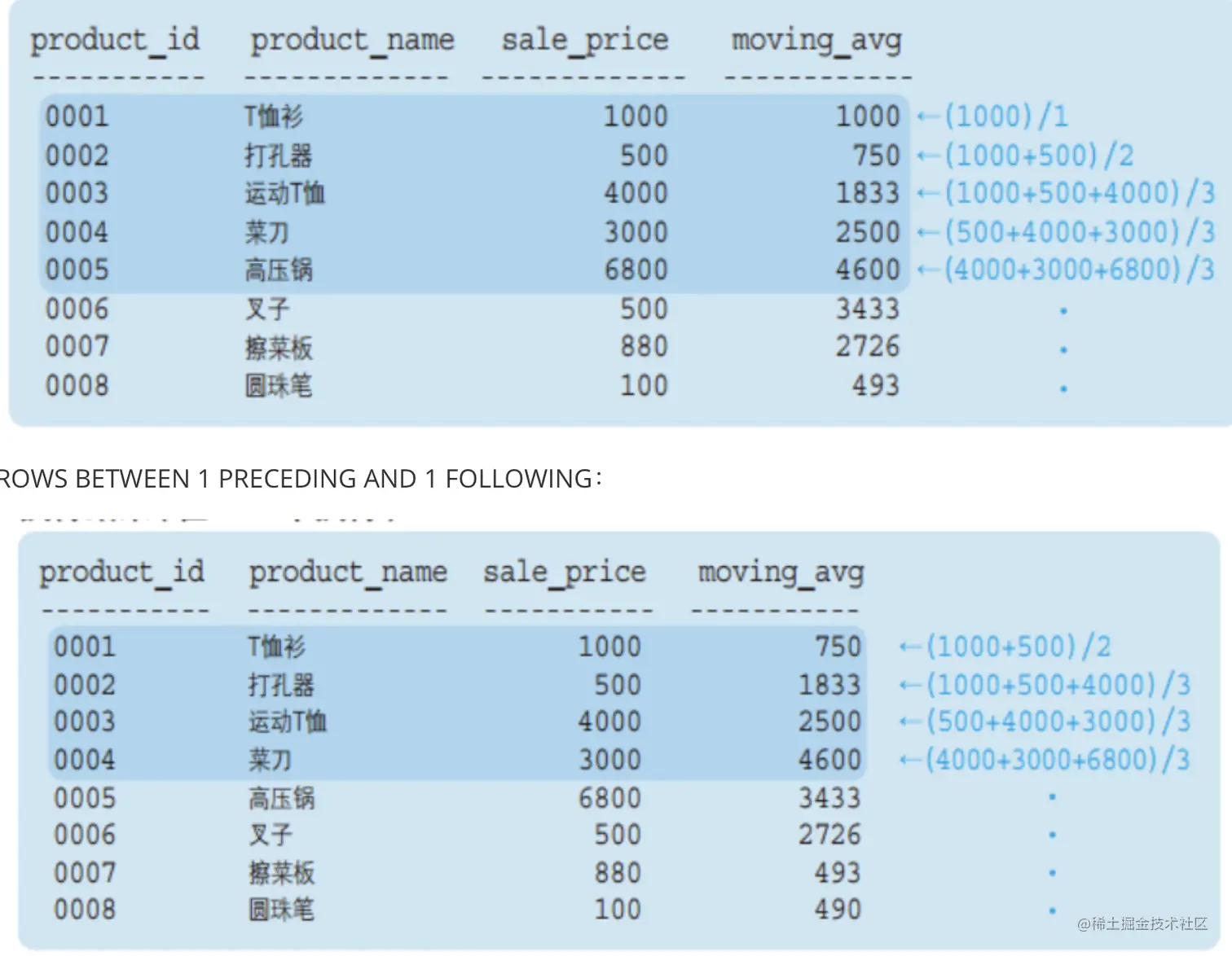 ROWS 2 PRECEDING) AS moving_avg1