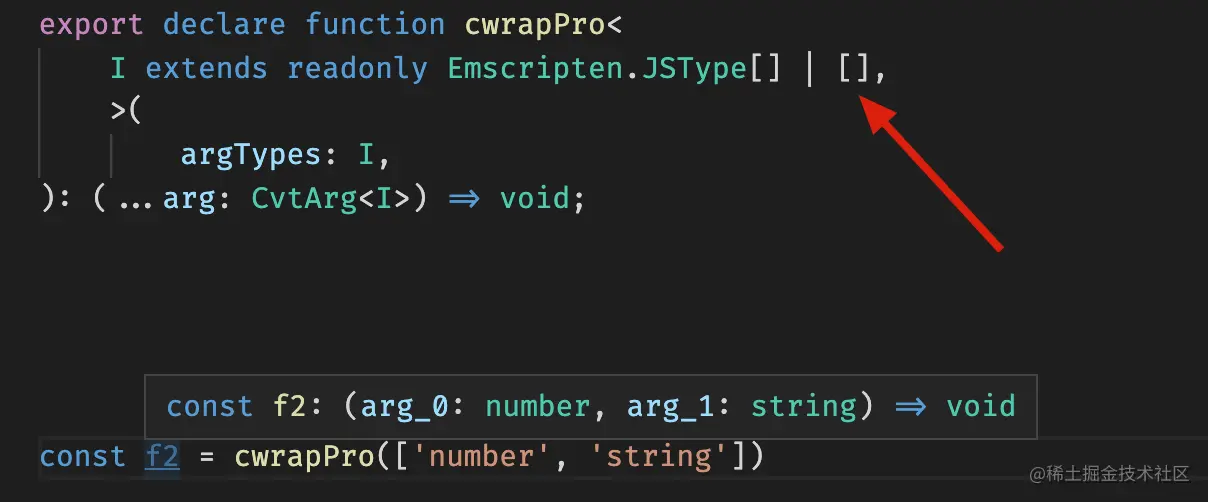 然而当你实现后发现有问题. 用个简单的例子说明下, 可以发现类型 退化 了, 从字面量元组变成了字符串数组, 所以导致后续的推导失败, 这里不太清楚是什么机制导致的, 有同学知道的话欢迎交流哈