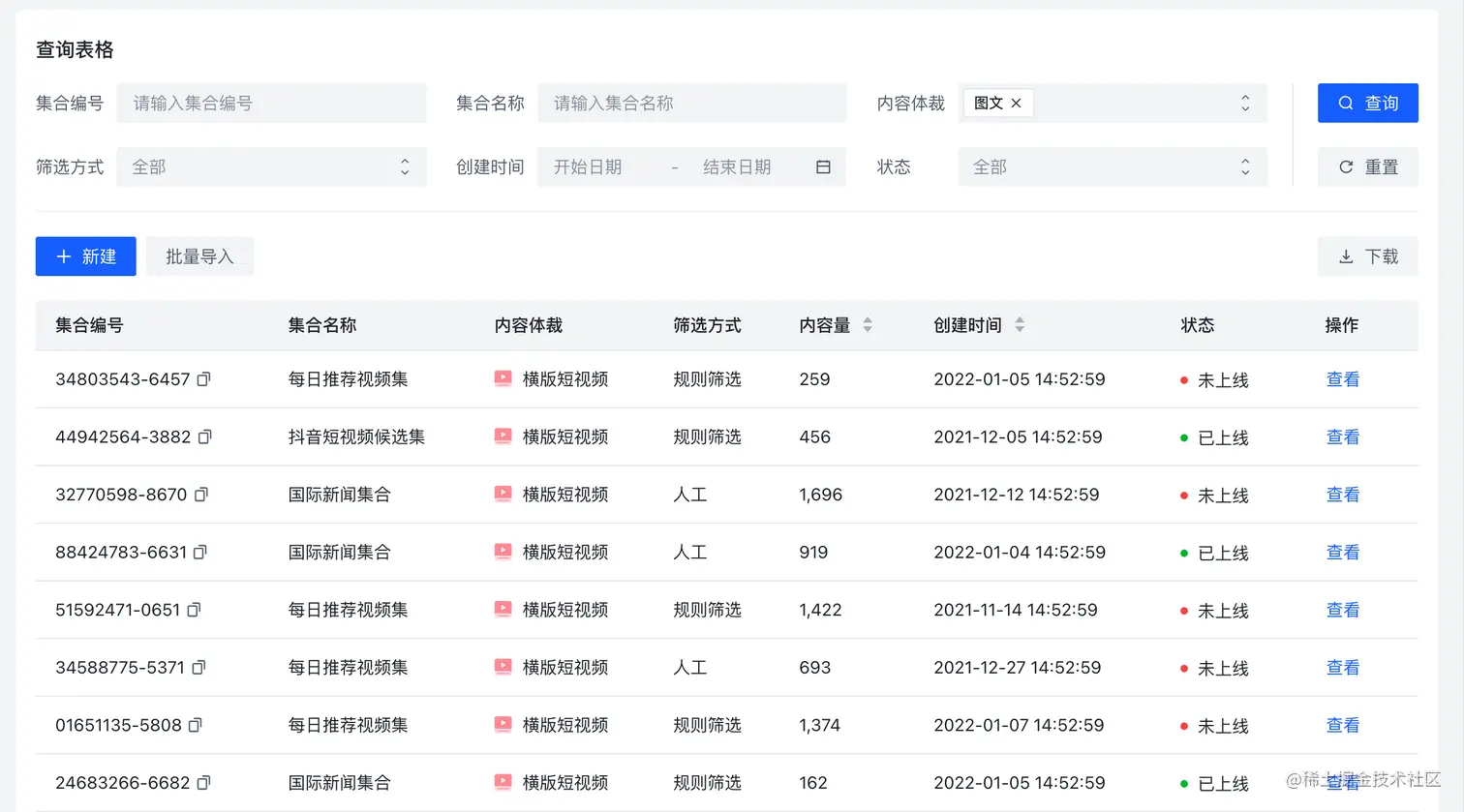 - 首先用户在内容体裁选择框选中“横版短视频”,然后点击查询 , 这次我们称为第一次请求