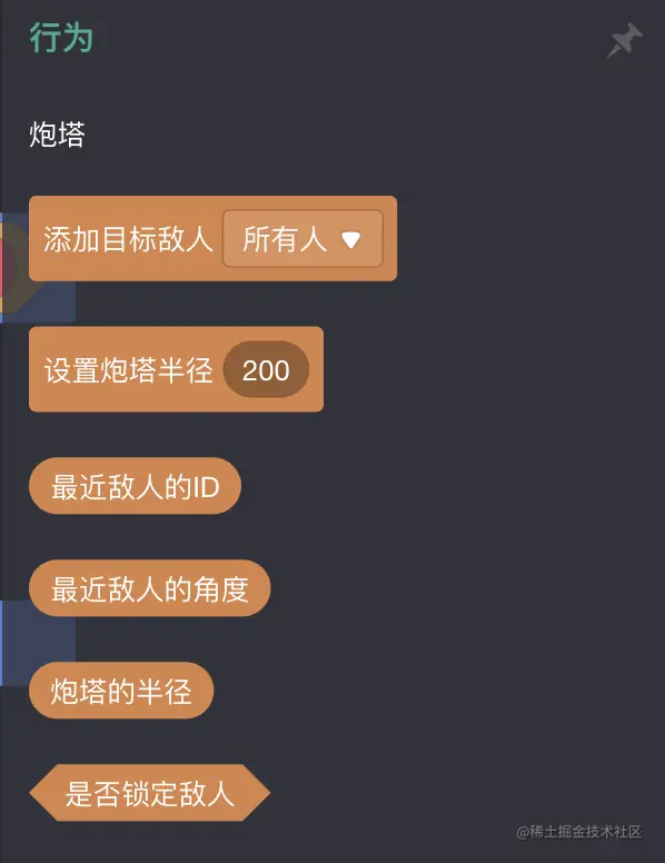 最后,我们再来看一下炮塔容器上的控制炮塔攻击的积木块儿。