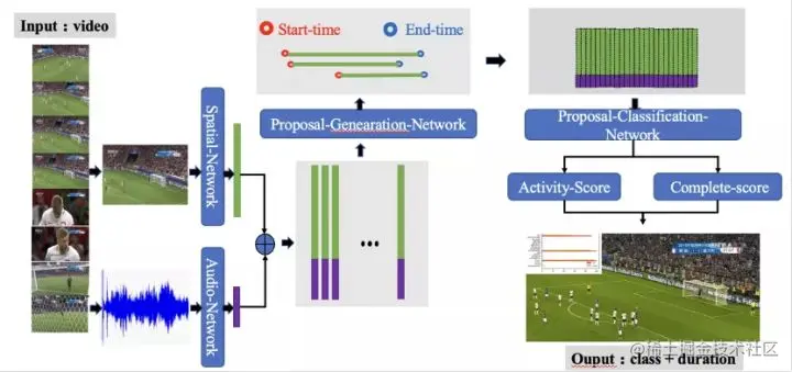 - 动作检测任务复杂度高:视频精彩片段剪辑任务的实现要点在于准确找到该类动作发生的起止点。但体育类视频内经常包含大量冗余的背景信息,动作类别多样且持续时长相对较短,要精准的判断出动作的起始点和对应类别,任务难度高;