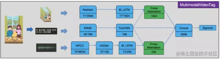 - 视频标签具有高层语义特点,单模态特征难以表达,高质量视频分类数据有限,对应的图像、音频、文本高语义特征提取困难;