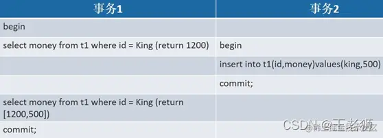 在事务执行过程中,另一个事务将新记录添加到正在读取的事务中时,会发生幻读。当事务 1 重复执行 SELECT… WHERE 语句时,在这期间事务 2 执行 INSERT语句插入了满足where 条件的新记录。于是事务 1 执行两次一模一样的SELECT… WHERE,返回却是两组不同的记录。