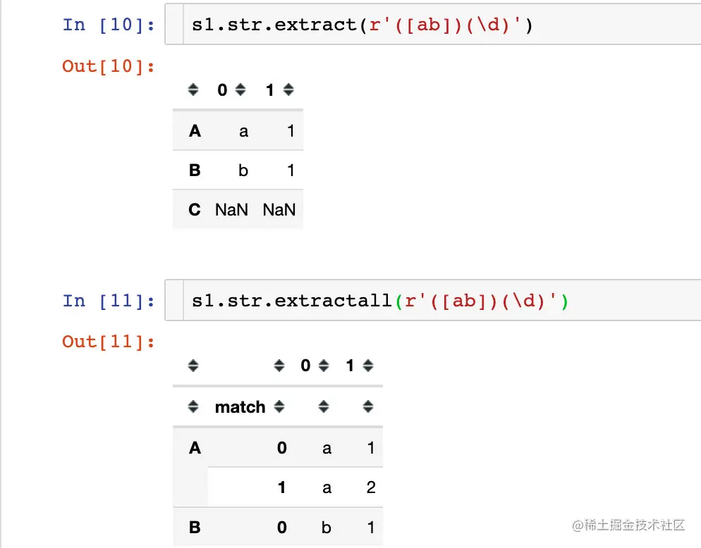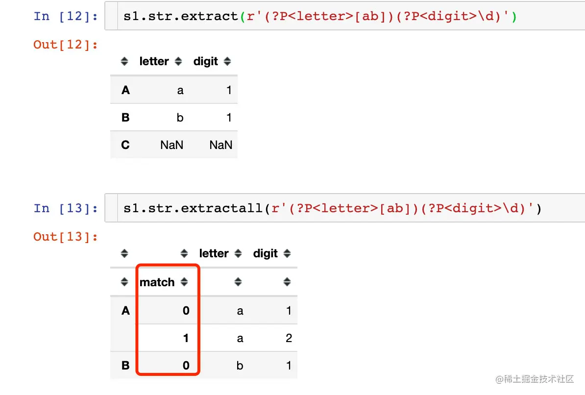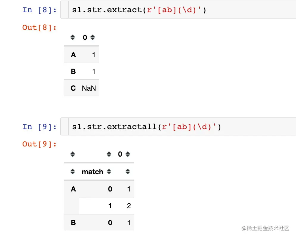 extract只返回第一个匹配到的字符;extractall将匹配所有返回的字符