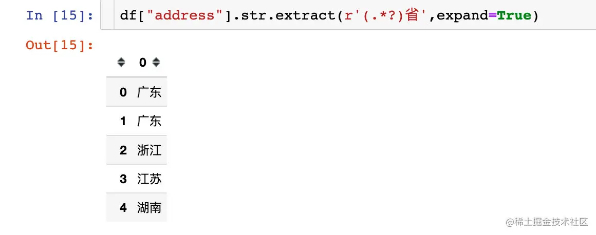 快速提取地址address中的省份信息,其中.*?表示匹配任意内容